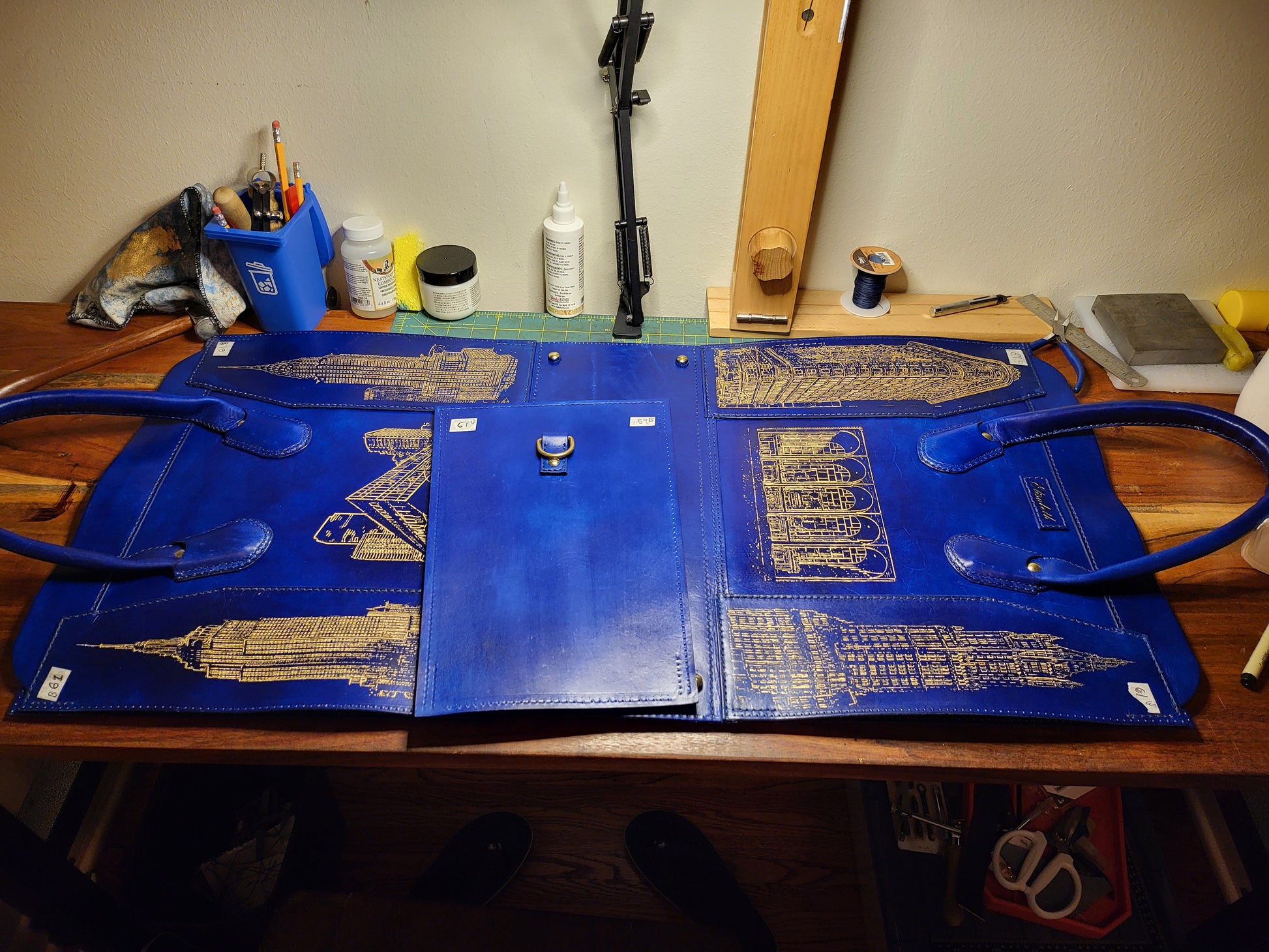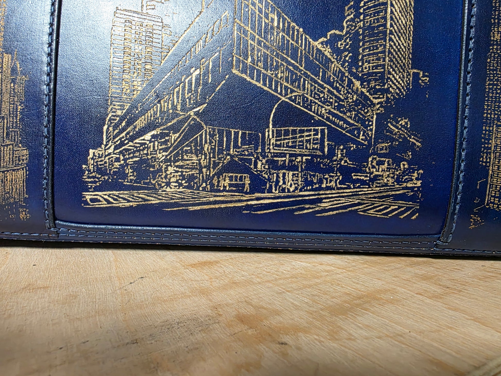 Over 150 hours of artisan work went into creating this museum-quality piece. Each building - including the Empire State Building, Chrysler Building, and architectural landmarks - was laser-engraved into premium vegetable-tanned leather, then brought to life with painstaking hand-painting using the finest gold metallic paint, applied with magnifying glass precision using the smallest brushes available.