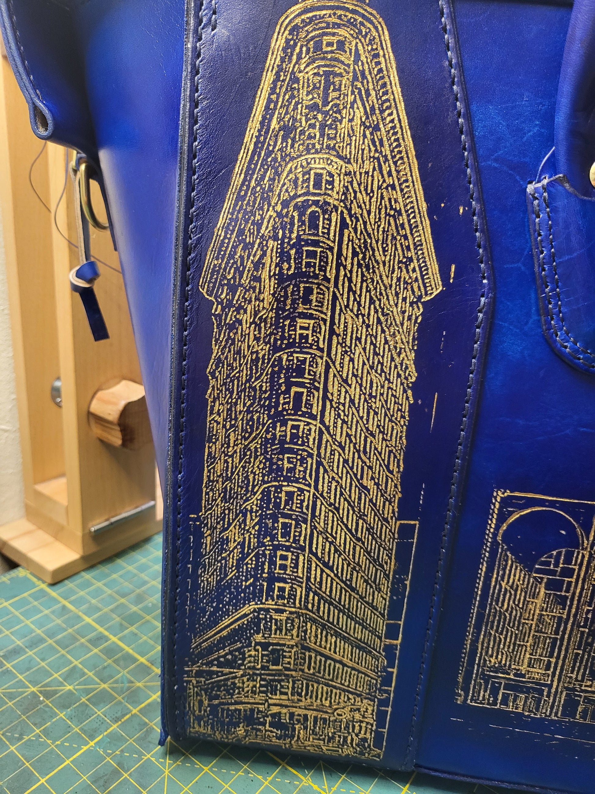 The Elisabeth Bag represents the pinnacle of custom leather artistry - a one-of-a-kind masterpiece that captures the magic of New York City at twilight. This extraordinary piece was commissioned as a narrative tribute to the energy and elegance of Manhattan, featuring laser-engraved iconic buildings with meticulously hand-painted golden windows that shimmer like the city lights against the night sky.